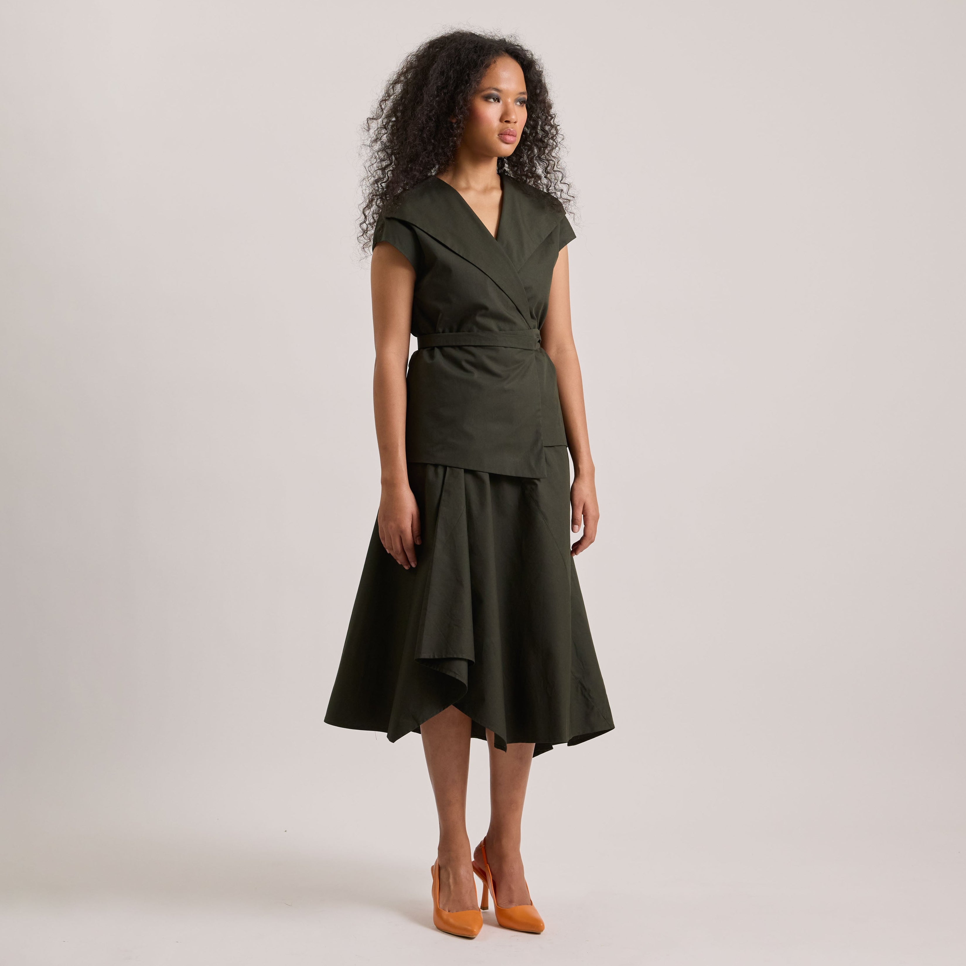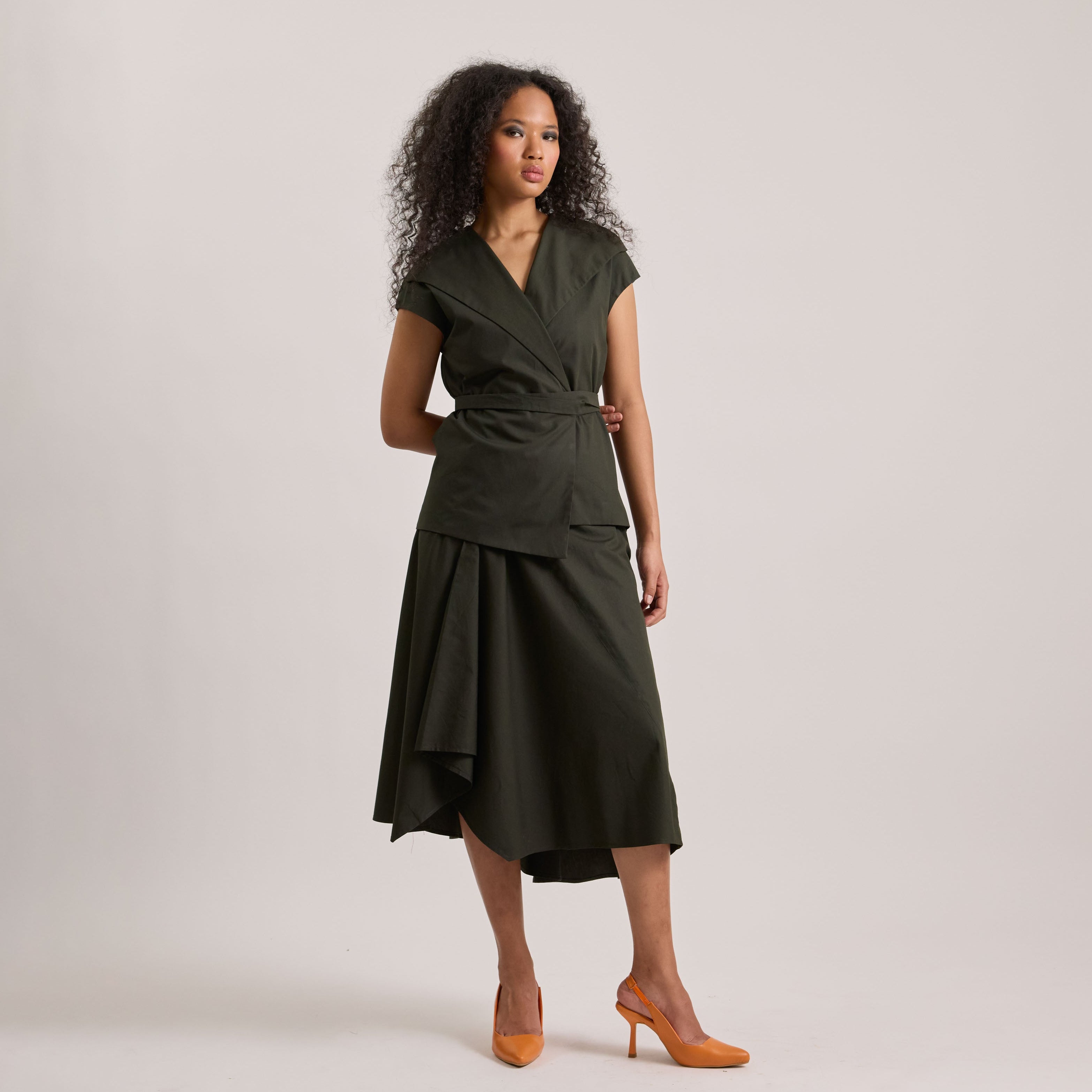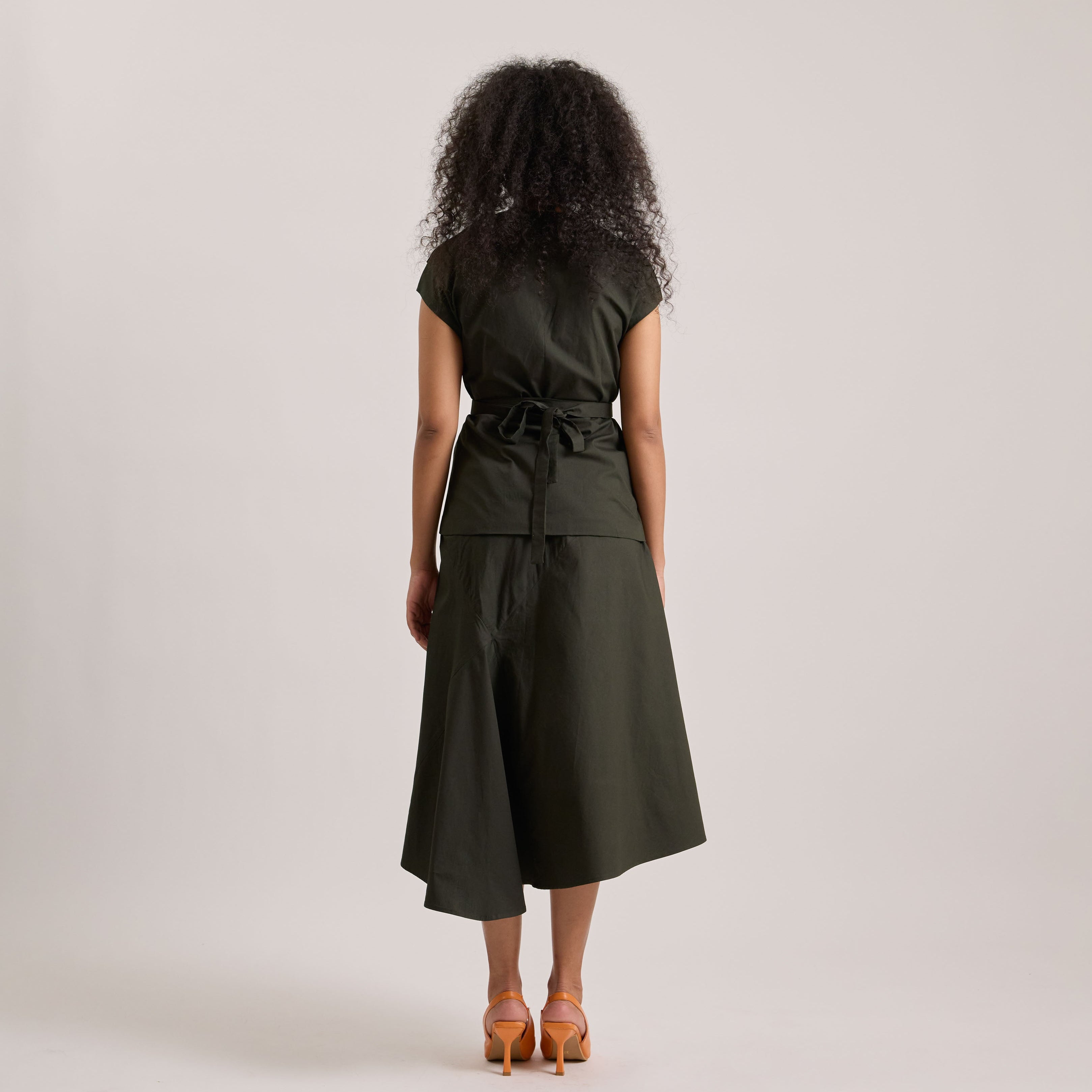 Poplin asymmetrical skirt and wrap top set