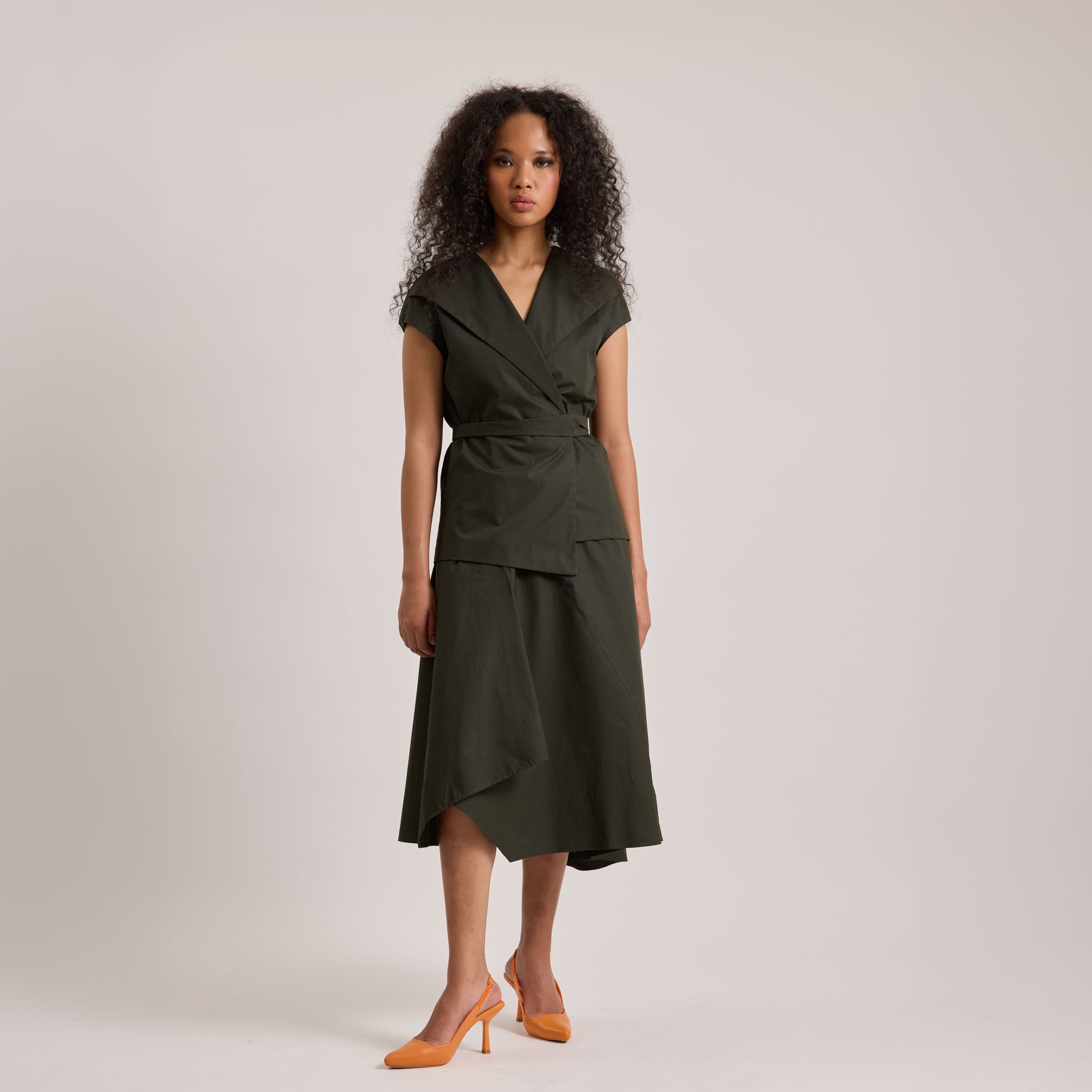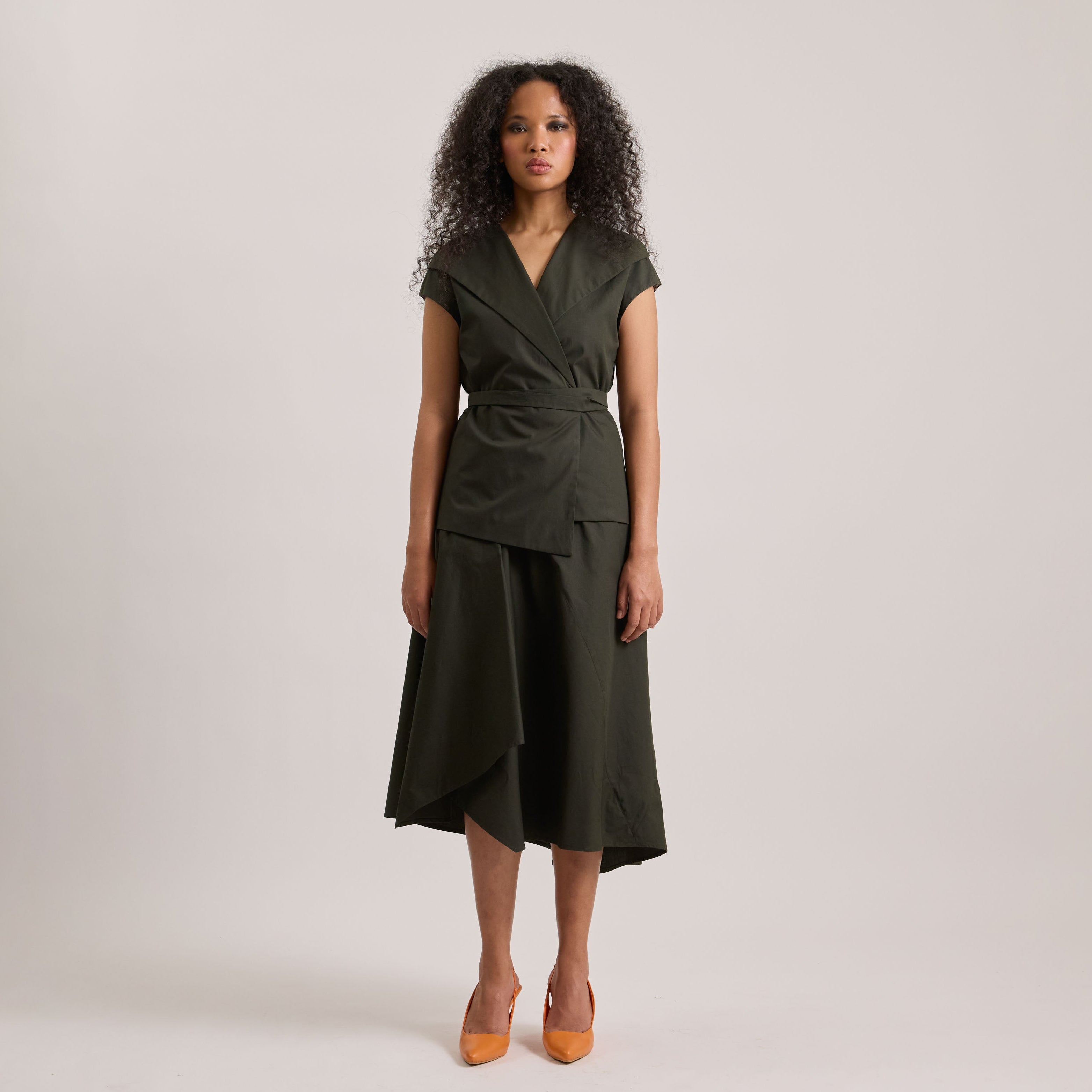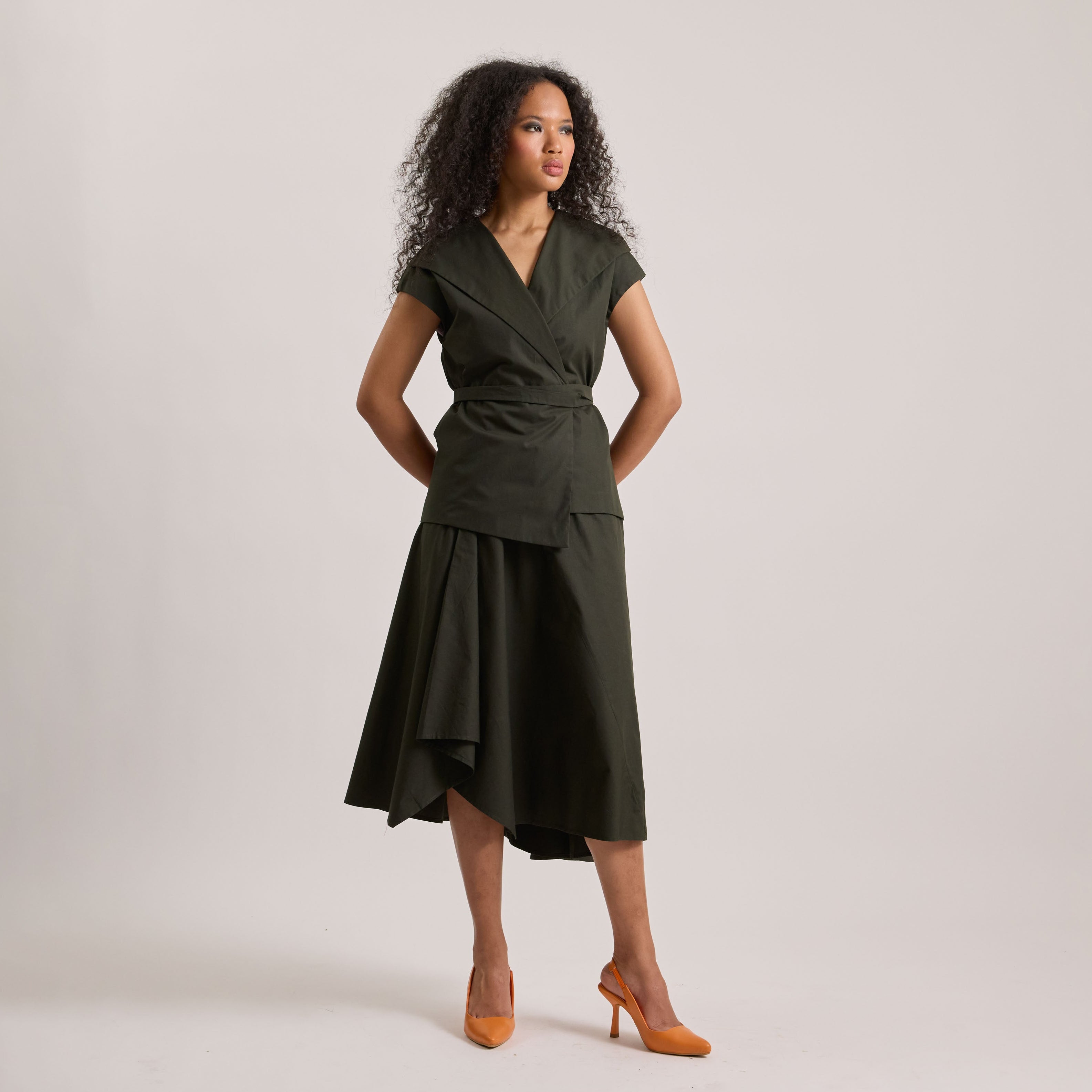 Poplin asymmetrical skirt and wrap top set