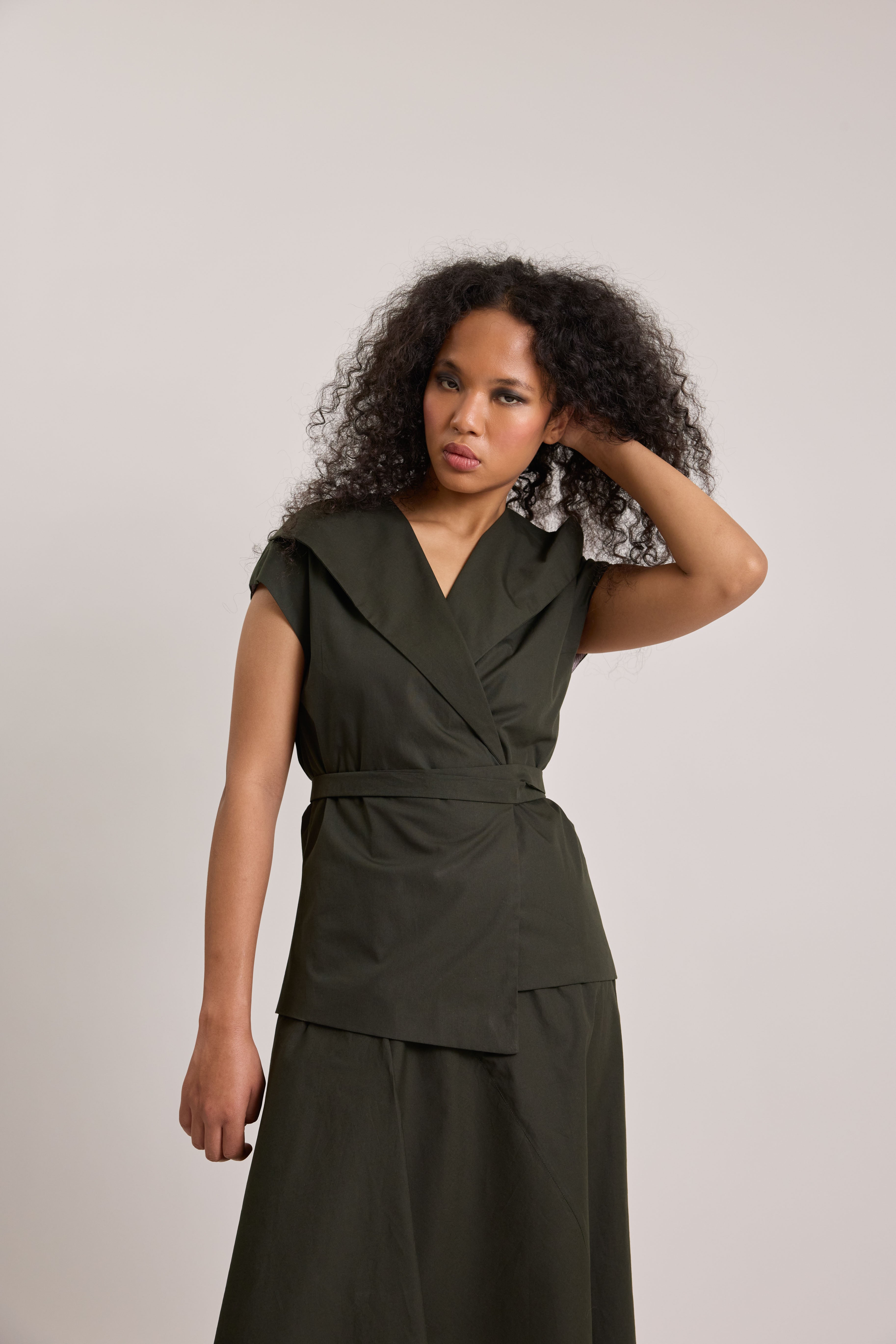 Modern and effortlessly stylish, this poplin set features a flattering wrap top paired with a statement asymmetrical skirt. Crafted from crisp, breathable poplin fabric, the wrap top cinches gently at the waist to create a feminine silhouette, while the asymmetrical skirt adds movement and contemporary edge. Perfect for both daytime outings and elevated casual occasions.
